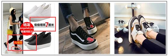 比如,一个消费者搜索“休闲鞋女 内增高”。你基本马上就可以判断出来,“内增高”是影响消费者是否转化的核心要素。而这个消费者基本可以判断出这样一些基本特征:个子矮、阳关、开朗(穿休闲板鞋)。