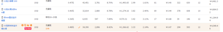 在设置价格的时候,切记上来不要直接高价走,上边也提到,展现太多,点击率跟不上的话,整体数据提升不上去,质量分不涨反而还会降低。